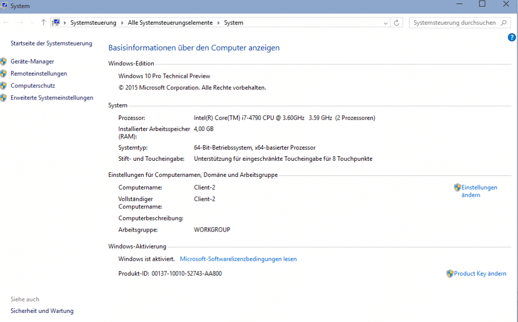 Ändern des Computernamens über den Desktop