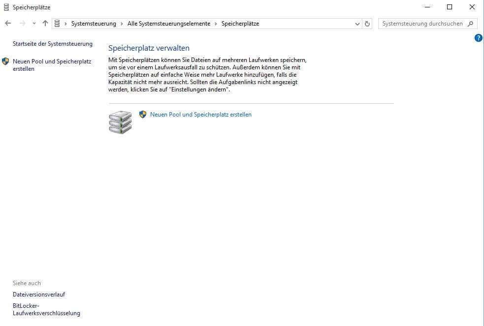 Als Erstes öffnet man über die Systemsteuerung, das Konfigurationsfenster Speicherplätze.