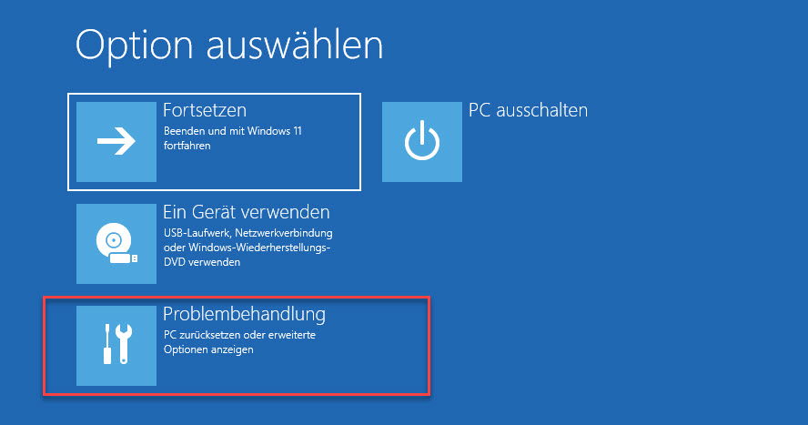 Im Bootmenü von Windows 11 wechselt man jetzt über die folgenden Schritte bis zu den UEFI-Firmwareeinstellungen.
